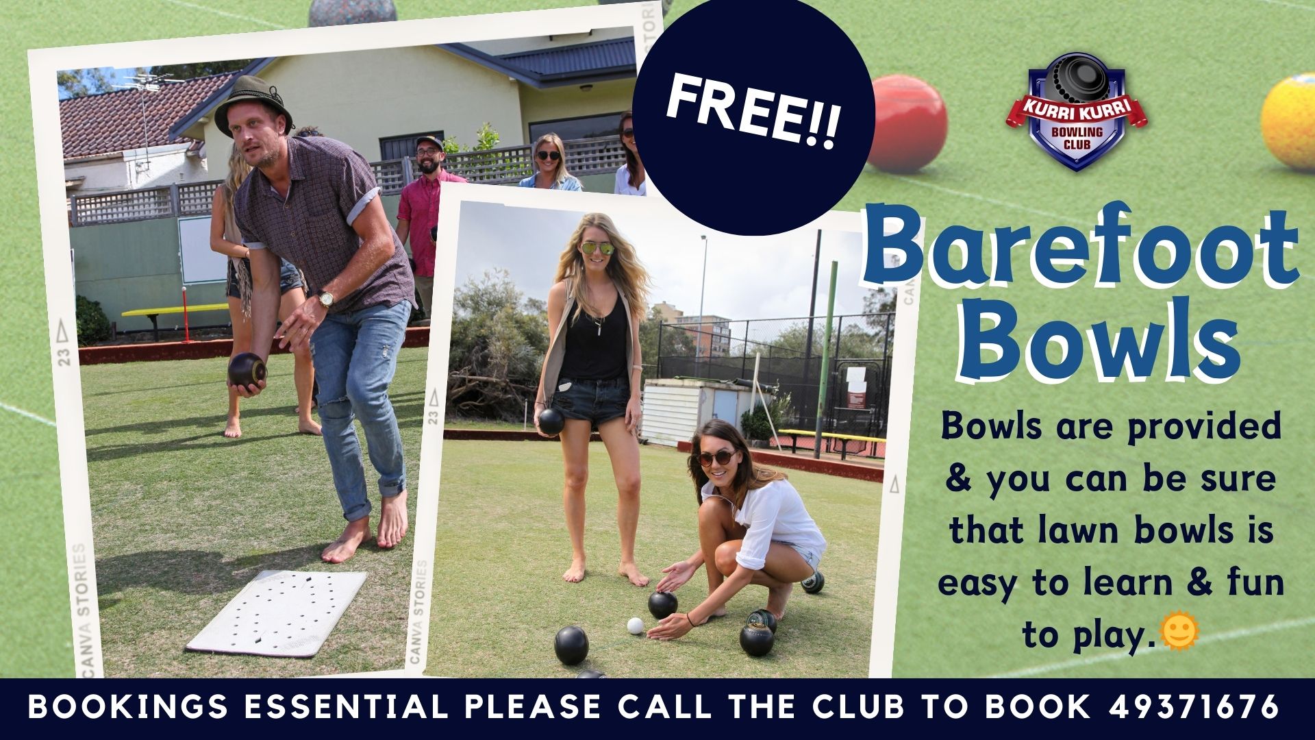 Please Arrange a Booking so your Barefoot Bowls Day is Assured! Everything for your game is provided by the club